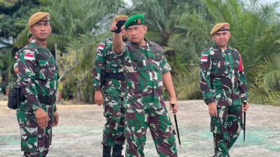MARITIMPOST.COM, Nunukan – Satgas Pamtas Batalyon Arhanud 8/MBC dipimpin langsung Dansatgas Letkol Arh Iwan Hermaya menerima kunjungan Danrem 092/MRL Brigjen TNI Adek Chandra Kurniawan, selaku Dankolakops Satgas Pamtas RI-Malaysia Sektor Timur di Pos Kotis Satgas pada Selasa (21/11/2023).