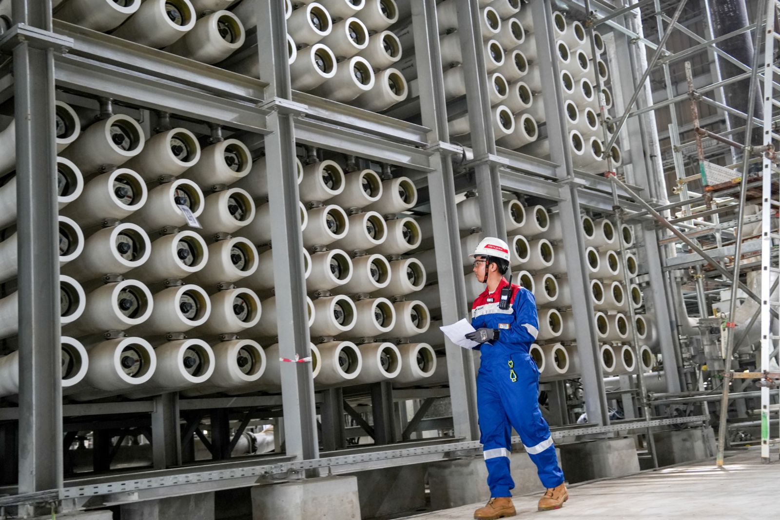 Fasilitas Sea Water Intake (SWI) dilengkapi tiga unit pompa dengan kapasitas total 22.500 meter kubik per jam (m³/jam), yang mengalirkan air laut ke lima unit SWRO berkapasitas 4.115 m³/jam. Proses ini mengubah air laut menjadi air tawar menggunakan teknologi membran berpori halus. Sementara itu, unit BWRO berkapasitas 3.500 m³/jam mengolah air payau menjadi air tawar untuk kebutuhan proses kilang.
