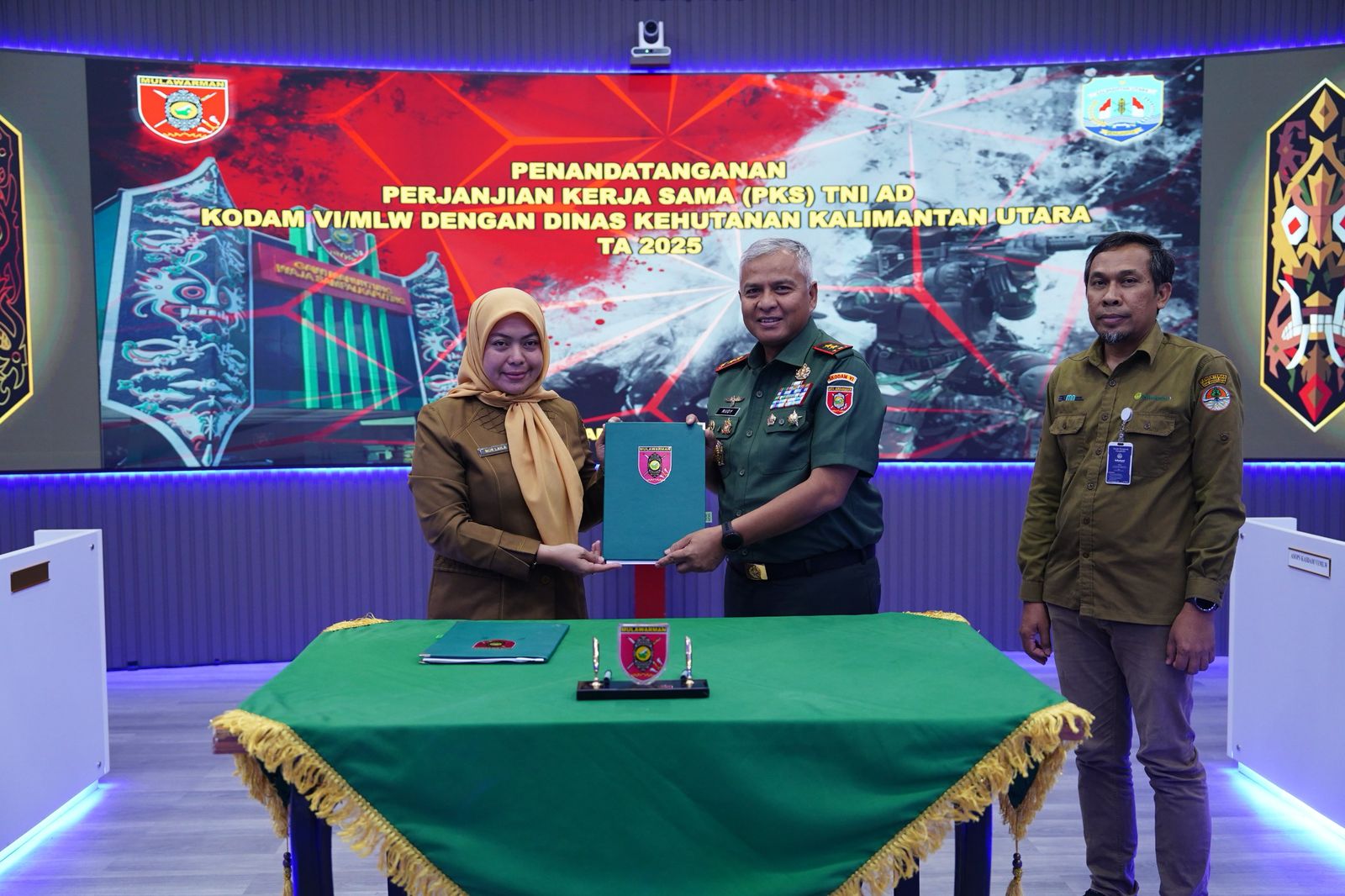Penandatanganan PKS dilakukan oleh Plt. Kepala Dinas Kehutanan Provinsi Kalimantan Utara, Nur Laila, S.Hut., M.Si., dan Pangdam VI/Mulawarman, Mayjen TNI Rudy Rachmat Nugraha.