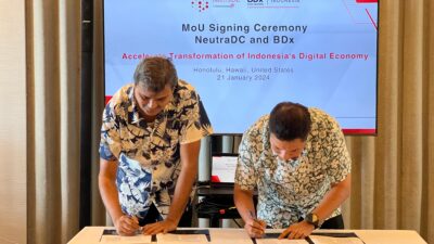 Kolaborasi ini ditandai dengan penandatanganan Nota Kesepahaman (MoU) antara Telkom Data Ekosistem (NeutraDC) dan joint venture dari BDx Data Centers (BDx), Indosat, dan Lintasarta, BDx Indonesia di Pacific Telecommunications Council (PTC) 2024, di Honolulu, Hawaii, AS, pada Minggu (21/1/2024).